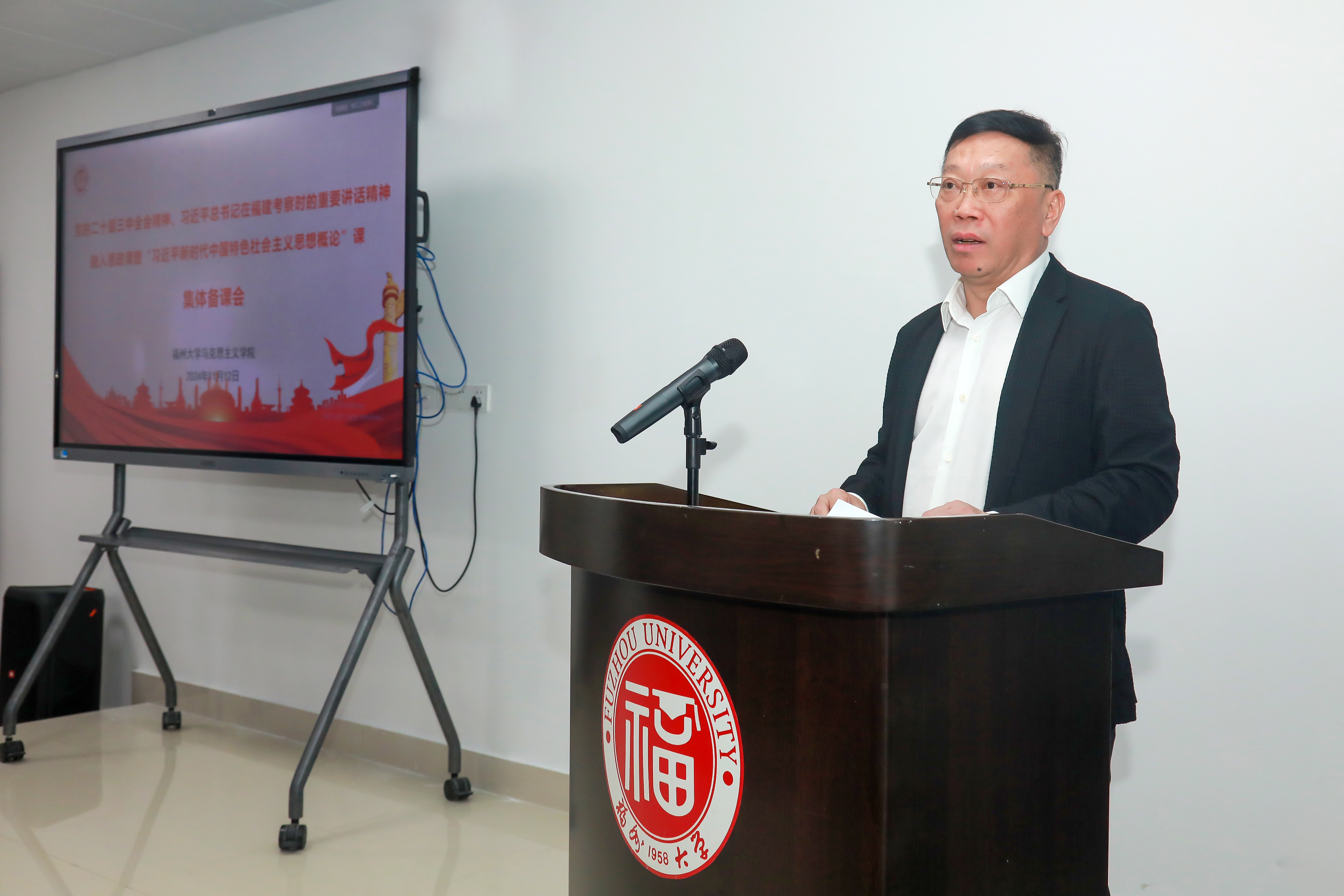 陈国龙书记强调,如何将我们“第一学院”建设成“一流学院”,是摆在学校、学院层面非常重要的任务。希望老师们能够从以下五大方面继续努力,将思政课上好,不辜负党和人民的殷切期望。第一,加强对党的创新理论的学习,及时将党的创新理论有机融入到思政课教育教学中。第二,充分运用好独特的教学资源优势,在各门思政课中有机融入总书记14次关怀37000cm威尼斯建设发展的论述精神,起到润心无声的教化作用。第三,继续守好课堂教学主阵地,精心组织教学内容,用心探索教学方法,增强思政课的针对性和吸引力,使思政课能够成为福大学生真心喜爱、终身受益的课程。第四,积极开拓思政课第二课堂,用心组织形式多样的思政课实践活动。第五,发扬教育家精神,努力成为政治强、情怀深、思维新、视野广、自律严、人格正的思政课老师。