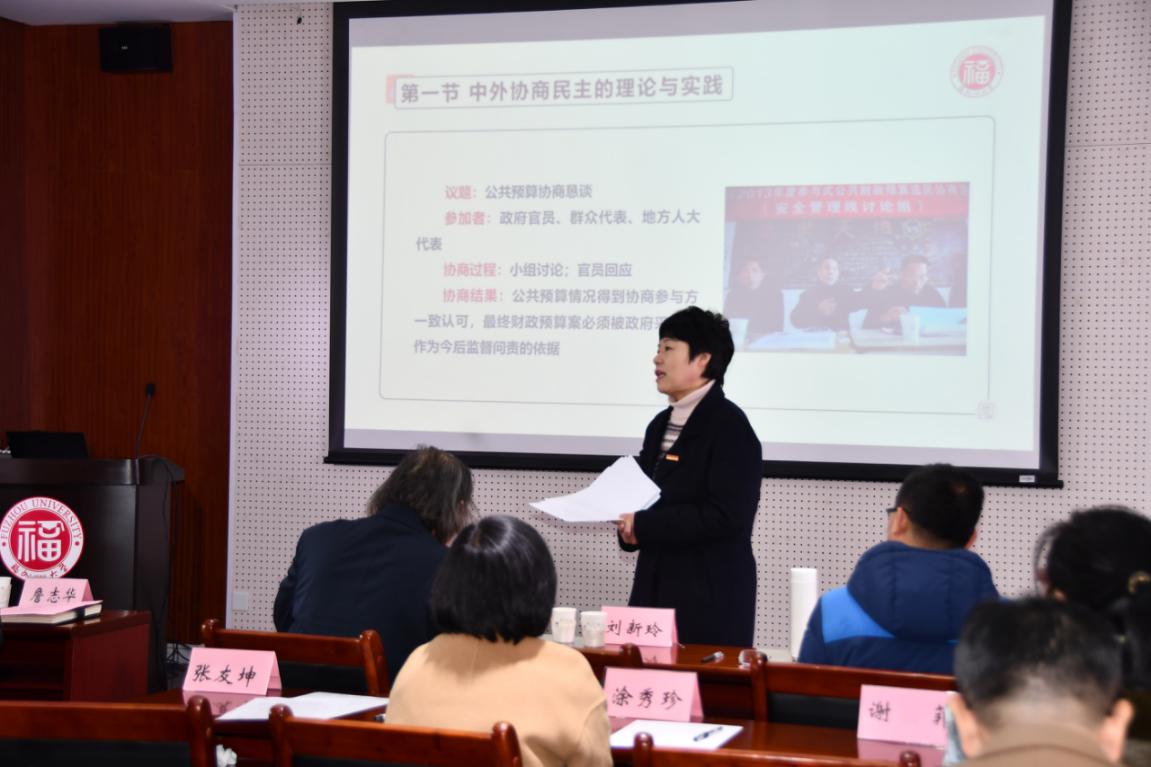 为进一步提升思政课教学质效,12月28日,威尼斯官网在410学术报告厅举办首届教师教学竞赛暨思政课教学观摩活动。比赛包括45分钟独立且完整的教学设计(教案)、15分钟“模拟课堂”教学演示两个环节。参赛教师共9人,其中专任思政课教师8人、“双肩挑”教师1人。评委包括:教育部思政课教学指导委员会委员、福建农林大学37000cm威尼斯院长刘新玲教授,福建江夏学院习近平新时代中国特色社会主义思想研究所所长郭健彪教授,福建江夏学院37000cm威尼斯院长曾正滋教授,福建工程学院37000cm威尼斯党委书记、院长袁小云教授,校党委宣传部副部长涂秀珍老师,校教务处副处长张友坤老师,“全国高校思政课名师工作室”负责人舒展教授,教育部思政课教学指导委员会委员谢菲教授。院党委书记黄发友教授出席比赛,活动由执行院长詹志华教授主持。